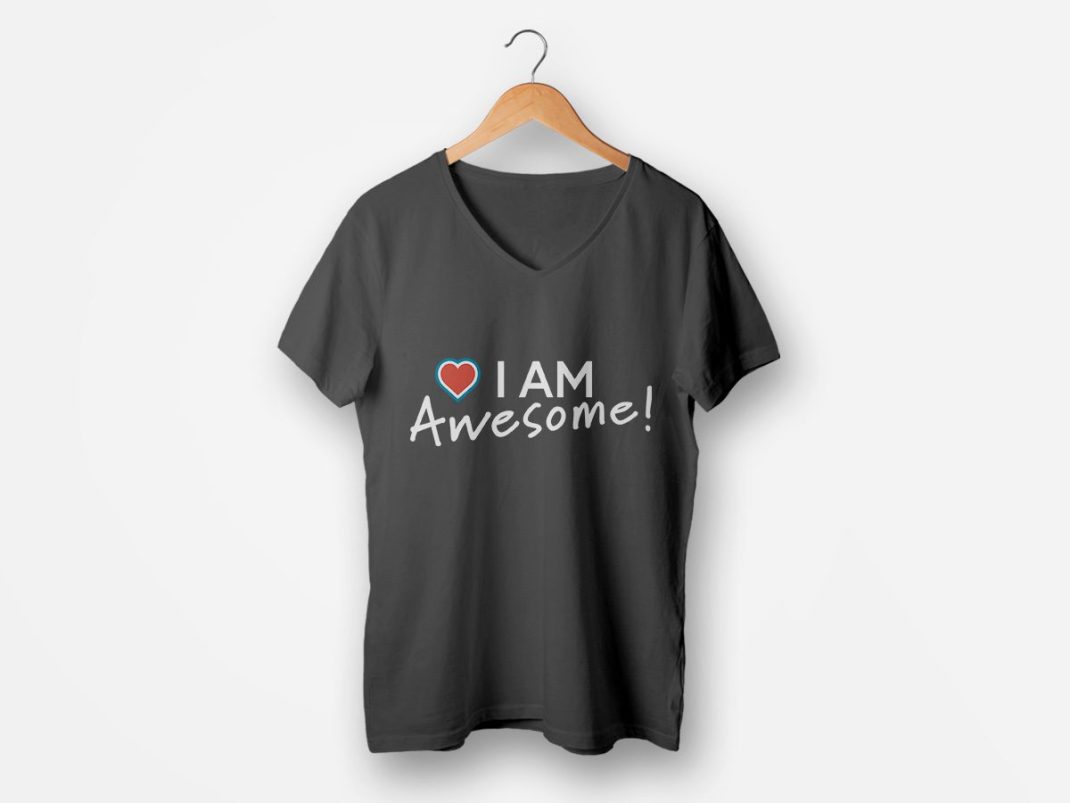 T-Shirt – I am Awesome Gray V-Neck